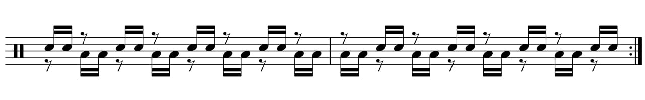 Overlapping rhythms will help to not crush splits. In this exercise, player one’s last note should be player two’s first.
