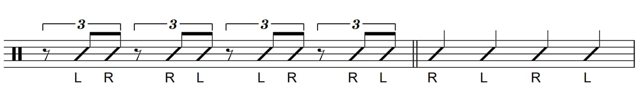 In the first 4 bars, keep time lightly on the rim with your left hand. As you remove the left hand in the next 4 bars, keep that same sense of pulse going in your feet. Learn the relationship between each partial and the downbeat.