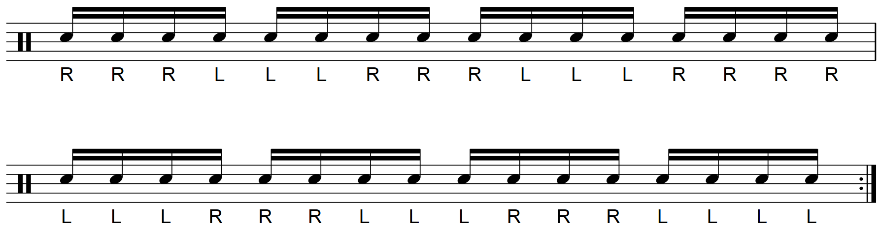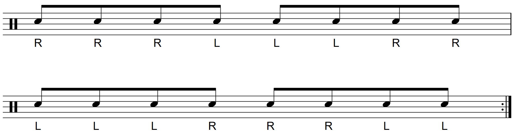 A Full Stroke, also known as a Legato Stroke or a Piston Stroke, is played full and connected. These strokes start and end in the same position.