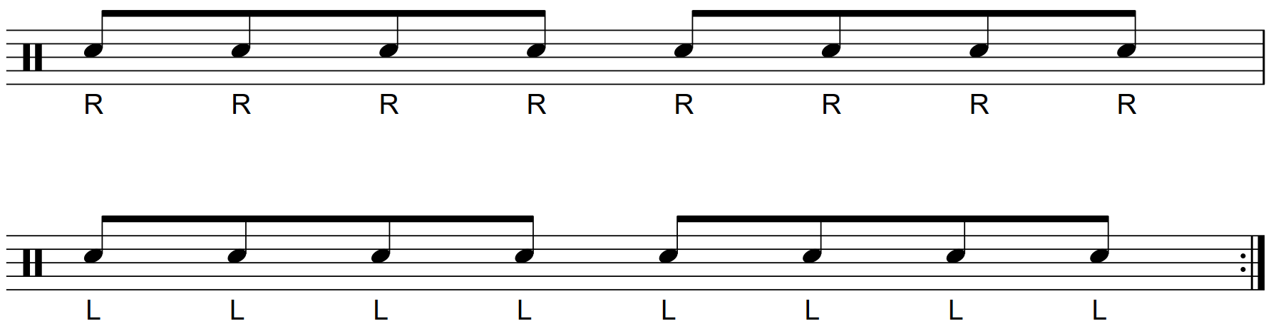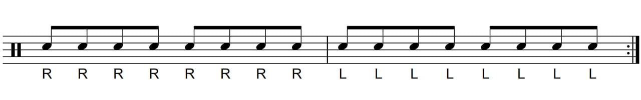 Like bouncing a ball, you throw the stick down and let the drum return it to the up position. Don’t make more work for yourself by stopping each note at the bottom and then needing to immediately pick it back up. Nobody likes playing with a flat basketball. Additionally, this can lead to whipping and inconsistent sound quality.